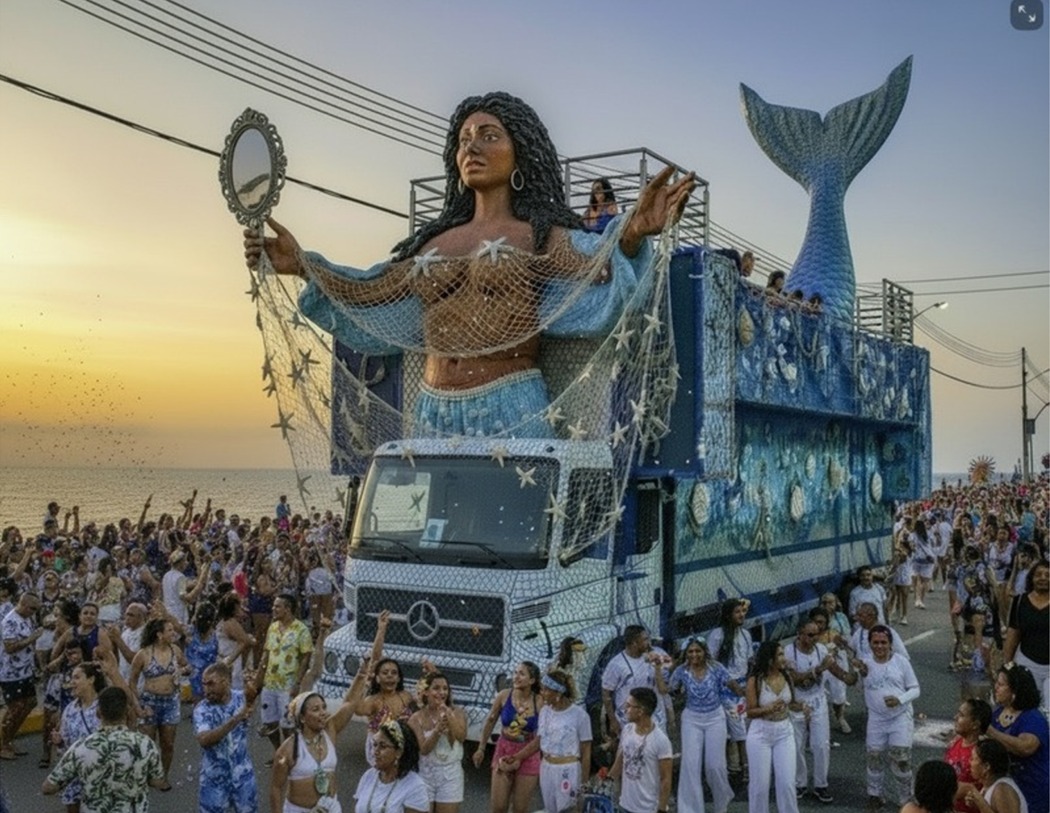 Na tradição afro-brasileira, Yemanjá é a Rainha do Mar, mãe dos Orixás e guardiã das águas salgadas, associada à fertilidade, proteção e abundância. Sua devoção é profundamente enraizada na identidade cultural de Salvador, especialmente nas celebrações do 2 de Fevereiro. A narrativa do Arrastão dialoga ainda com a linha dos Marinheiros, entidades da Umbanda ligadas às forças do oceano, que representam coragem, trabalho e esperança.