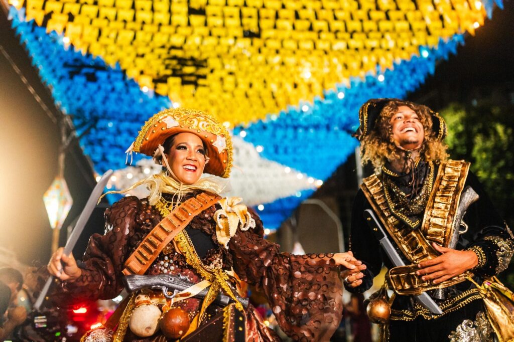 A moda também tem ganhado espaço nesse novo cenário junino. O Ateliê Mão de Mãe, participante do projeto Abará About, levou criações autorais inspiradas na estética das quadrilhas e artistas como Juliette e Márcio Victor. “A cultura junina influencia diretamente os figurinos e aquece o setor criativo da moda”, comenta o estilista Patrick Fortuna.