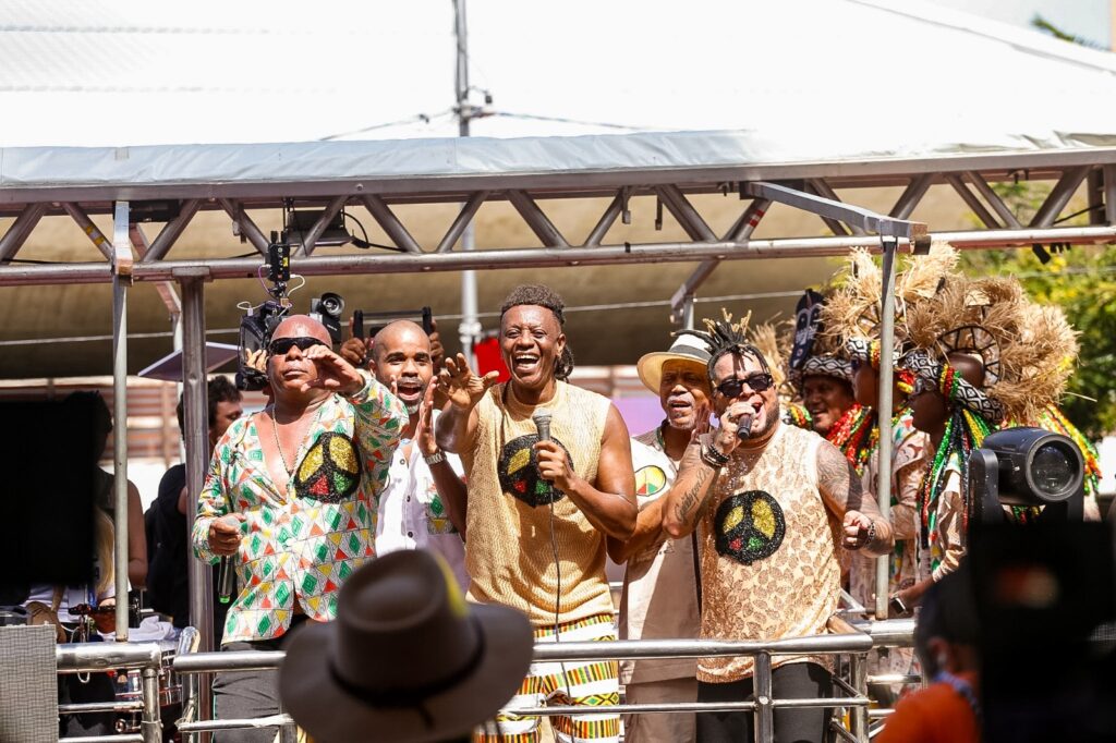 No trio elétrico, a percussão comandou o som marcante que é identidade do Olodum, enquanto outra ala de percussionistas seguiu no chão, fortalecendo ainda mais a presença do bloco na avenida. O desfile também teve carro de apoio com destaques como Negra Jhow e a dançarina Dora Lopes, além de adereços que deram brilho extra à apresentação.