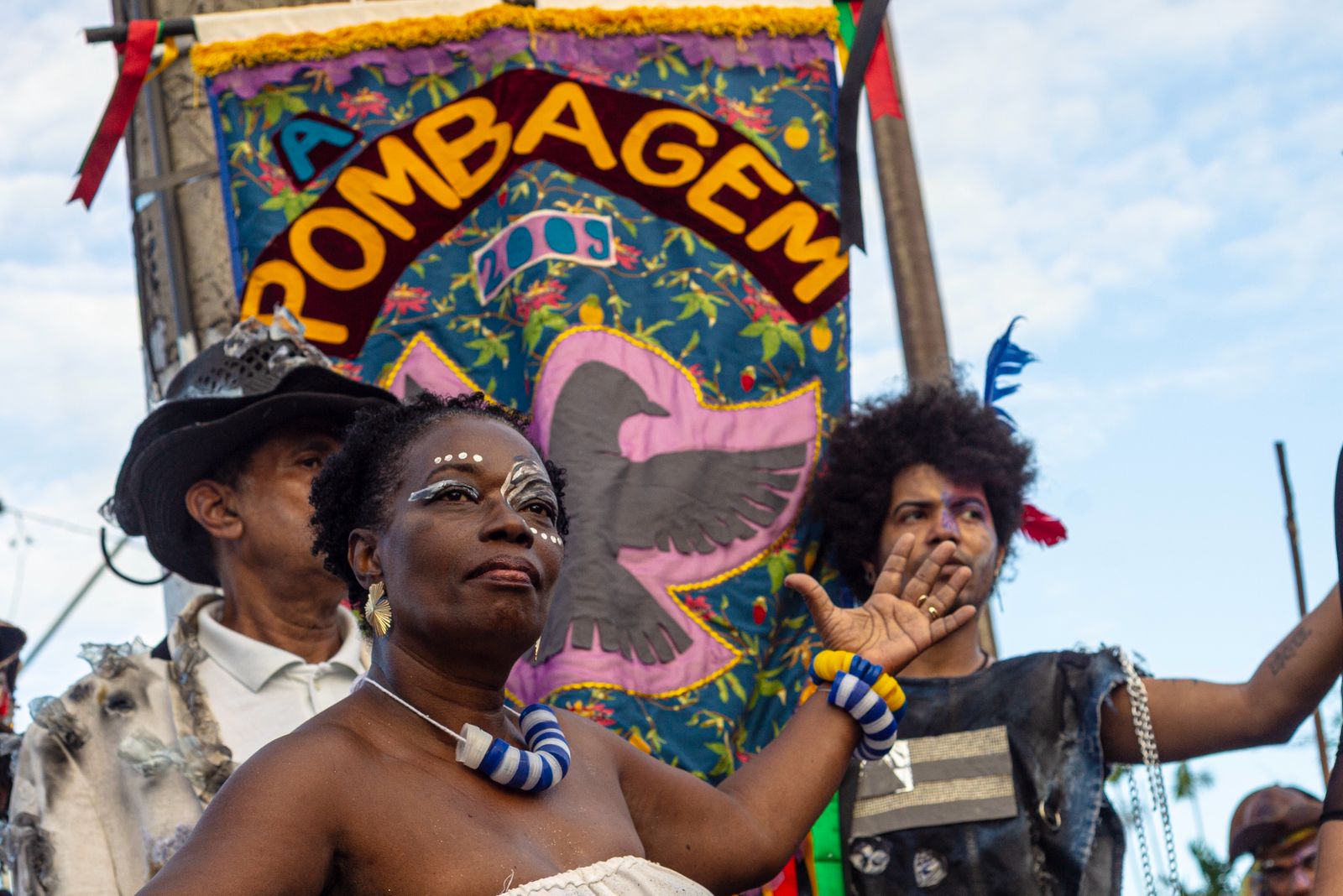 Criado em 2009, o Grupo A Pombagem desenvolve ações de arte popular e teatro de rua há 16 anos, mantendo o movimento “O Museu é a Rua”. Em 2022 inaugurou a Casa do Museu Popular da Bahia e, em 2023, integrou o Programa de Residência Artística do Museu de Arte Moderna da Bahia (MAM).