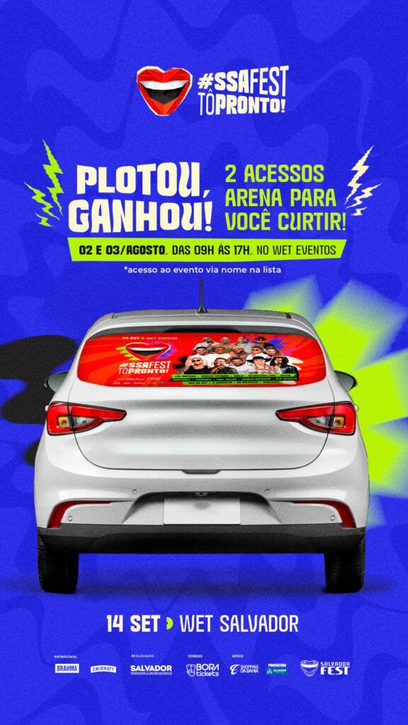 A contagem regressiva para o Salvador Fest 2025 já começou! E para esquentar o clima da festa mais esperada do segundo semestre, a organização anunciou uma promoção especial que vai garantir um par de ingressos gratuitos para o setor ‘Arena Pronto e Querendo’ a quem participar da ação de plotagem de veículos, nos dias 2 e 3 de agosto, das 9h às 17h, no estacionamento do Wet Eventos.