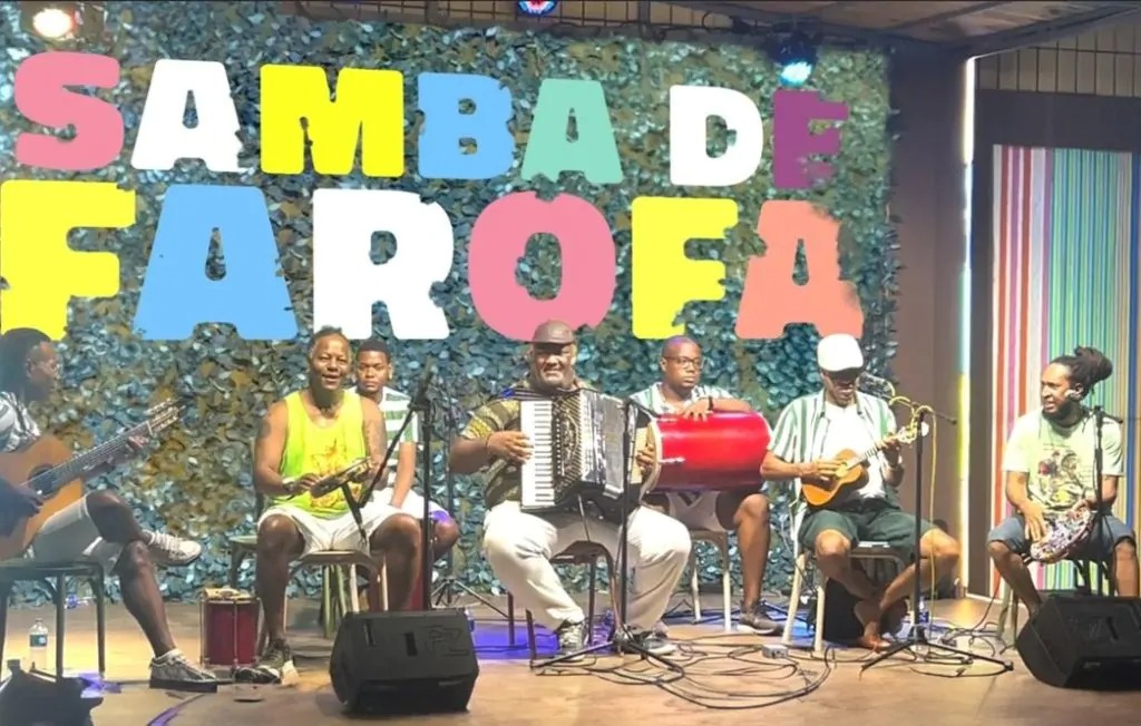 Inserido no circuito da maior manifestação religiosa e cultural dedicada à Rainha do Mar, o cortejo convida pessoas de todas as idades a vivenciarem a festa de forma coletiva, dançando e cantando ao som do samba de raiz da Bahia. Conhecido pelo alto nível musical e pelo cuidado na escolha do repertório, o Samba de Farofa aposta em um encontro entre harmonias, instrumentos de cordas e percussão, reforçando a identidade cultural que marca o grupo desde sua criação.